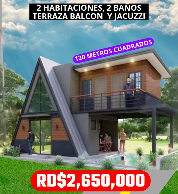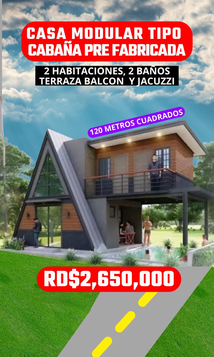 CASA MODULAR TIPO CABAÑA PRE FABRICADA DE 2 HABITACIONES 2 BAÑOS Y 120 METROS DE CONSTRUCCIÓN